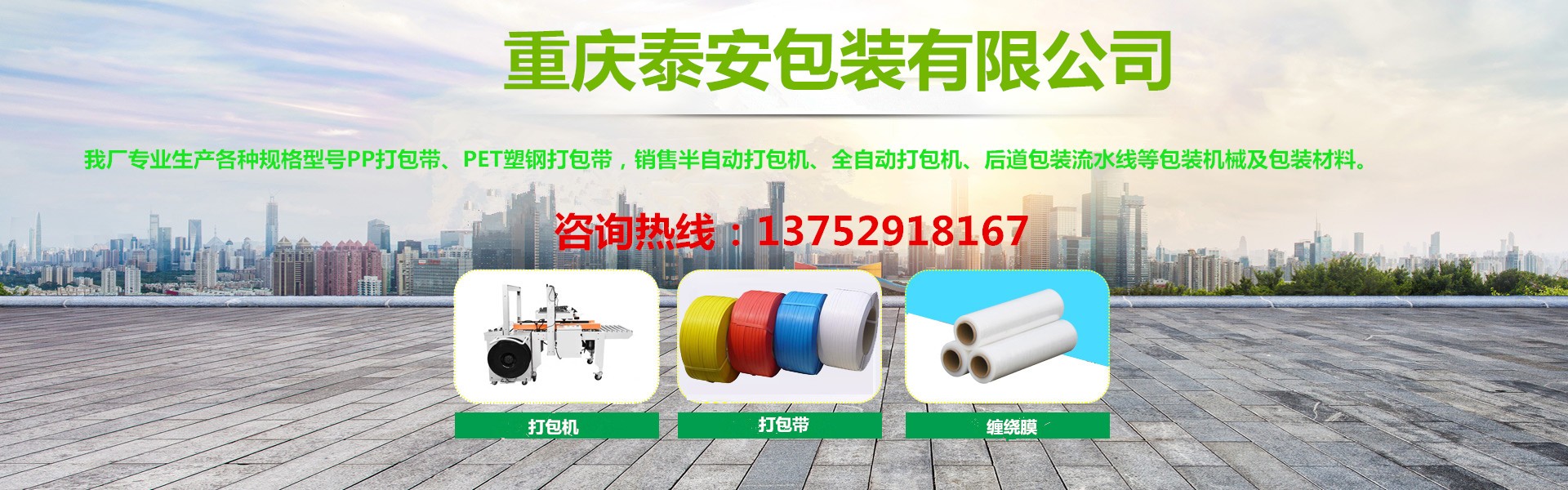 重慶泰安包裝有限公司(電話:13752918167)是專業生產各種打包帶、塑鋼帶、纏繞膜、膠帶,銷售打包機、纏繞機、封箱機、無人化流水線等各種包裝機械、包裝制品、包裝材料一體化的優秀包裝企業,始終堅持“穩步擴張、精益管理”的方針,堅持“換位思考,了解客戶需求,主動服務,超越客戶期待”的服務理念,以熱忱的服務、優良的品質、靈活的機制、創新的技術,向各新老客戶提供最優質、優價的產品和服務,具有對系列產品自主研發創新能力,能夠獨立根據用戶要求制版打樣。近十年來受到廣大客戶的信任,產品銷售遍及全國各大城市,與客戶形成自由平等、互利互惠的戰略合作關系,平均年銷售量2000多噸。